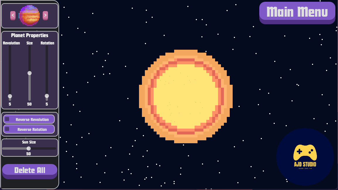 - Note: If You set the planet or sun's size to 1 it becomes almost invisible.